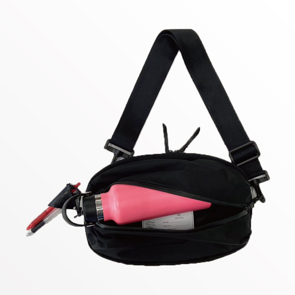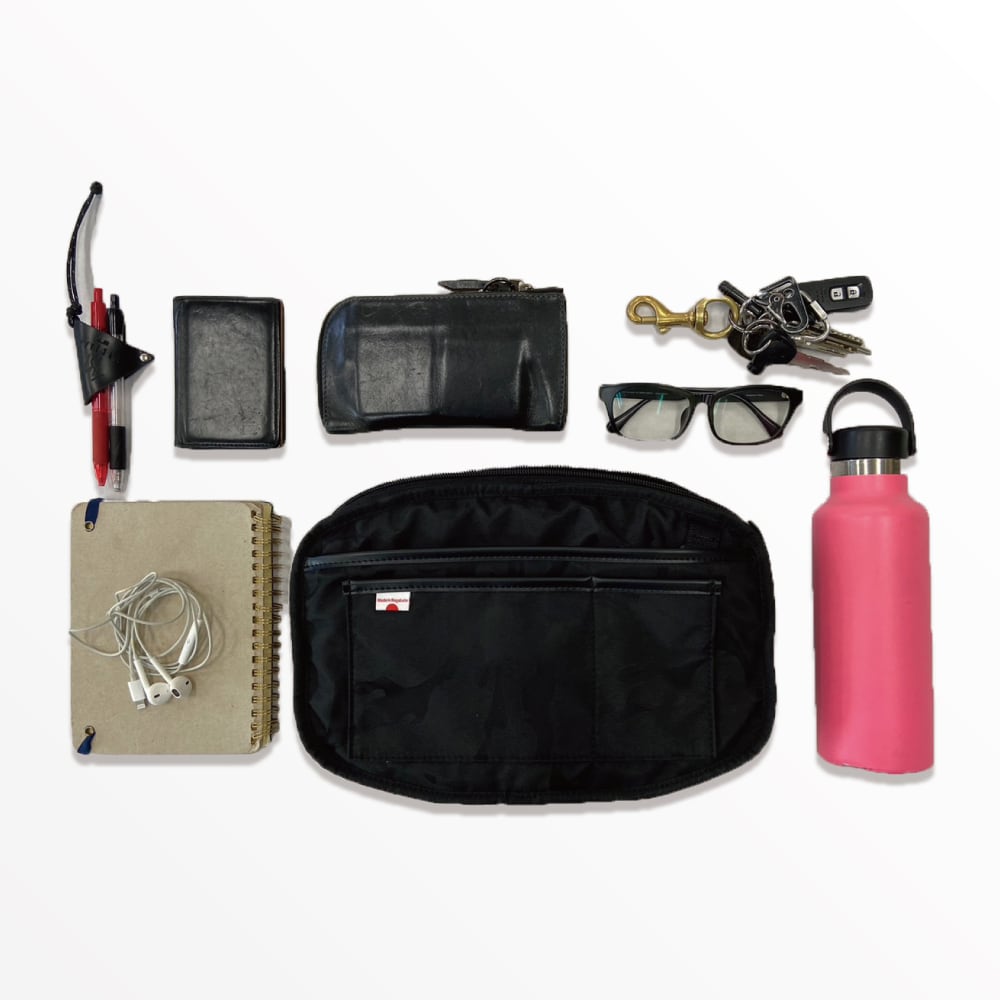 ・500mlペットボトル、アイパッドミニ、財布、携帯など必要な物は綺麗に収納可能